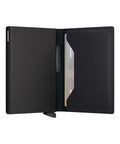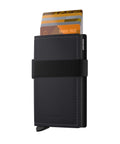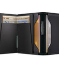 La Bandwallet es segura y delgada. La cinta mantiene todo bien sujeto. El corte en forma de gota te permite ver y extraer fácilmente las tarjetas del bolsillo interior.