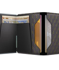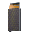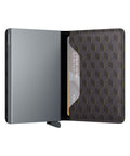 Gracias a su perfil delgado, la Slimwallet cabe perfectamente en todos los bolsillos. La cubierta exterior se corta con una longitud más larga para crear más espacio para tarjetas, billetes y tickets. El corazón del producto es el Cardprotector, cuyo mecanismo permite extraer las tarjetas con un simple movimiento, evitando que se doblen, rompan o lean sin que nos demos cuenta.
