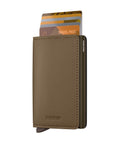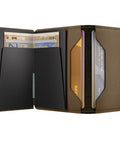 Gracias a su perfil delgado, la Slimwallet cabe perfectamente en todos los bolsillos. La cubierta exterior se corta con una longitud más larga para crear más espacio para tarjetas, billetes y tickets. El corazón del producto es el Cardprotector, cuyo mecanismo permite extraer las tarjetas con un simple movimiento, evitando que se doblen, rompan o lean sin que nos demos cuenta.