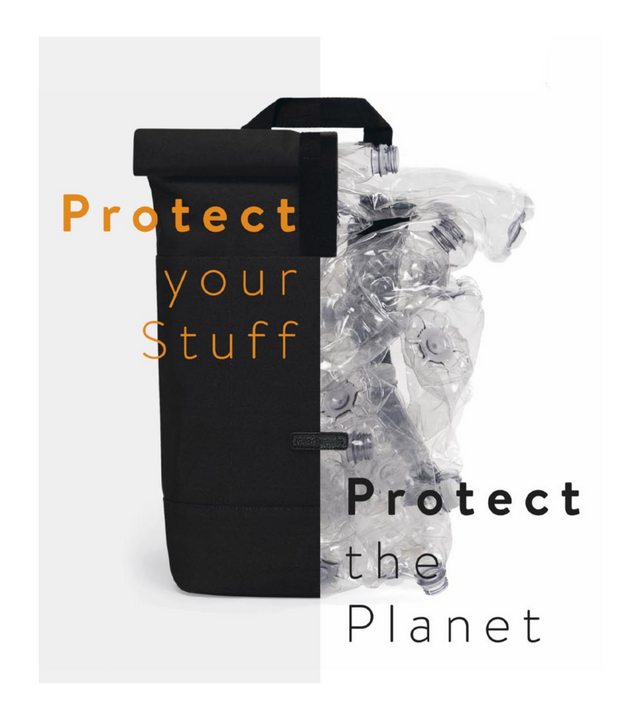 Alrededor de 140 millones de toneladas de plástico flotan en nuestras aguas y a eso se añaden 6 millones cada año. Algo debemos hacer al respecto y con su serie “Stealth”, UCON ACROBATICS ha querido hacer su contribución. ¿Cómo? Con una receta muy simple: Paso 1: Recolectando botellas plásticas hechas con PET (plástico de la familia del polyester) y quitándoles los restos que puedan tener. Paso 2: Separar las botellas por color y decolorarlas con un proceso especial. Paso 3: Derretir las partículas de plástico y transformarlas en pellets. Listo! No se necesitó de petróleo crudo para producir este hilo reciclado que compone la tela ultra resistente y reciclada. Así es como aproximadamente 20 botellas plásticas se reutilizan para hacer una nueva mochila.
